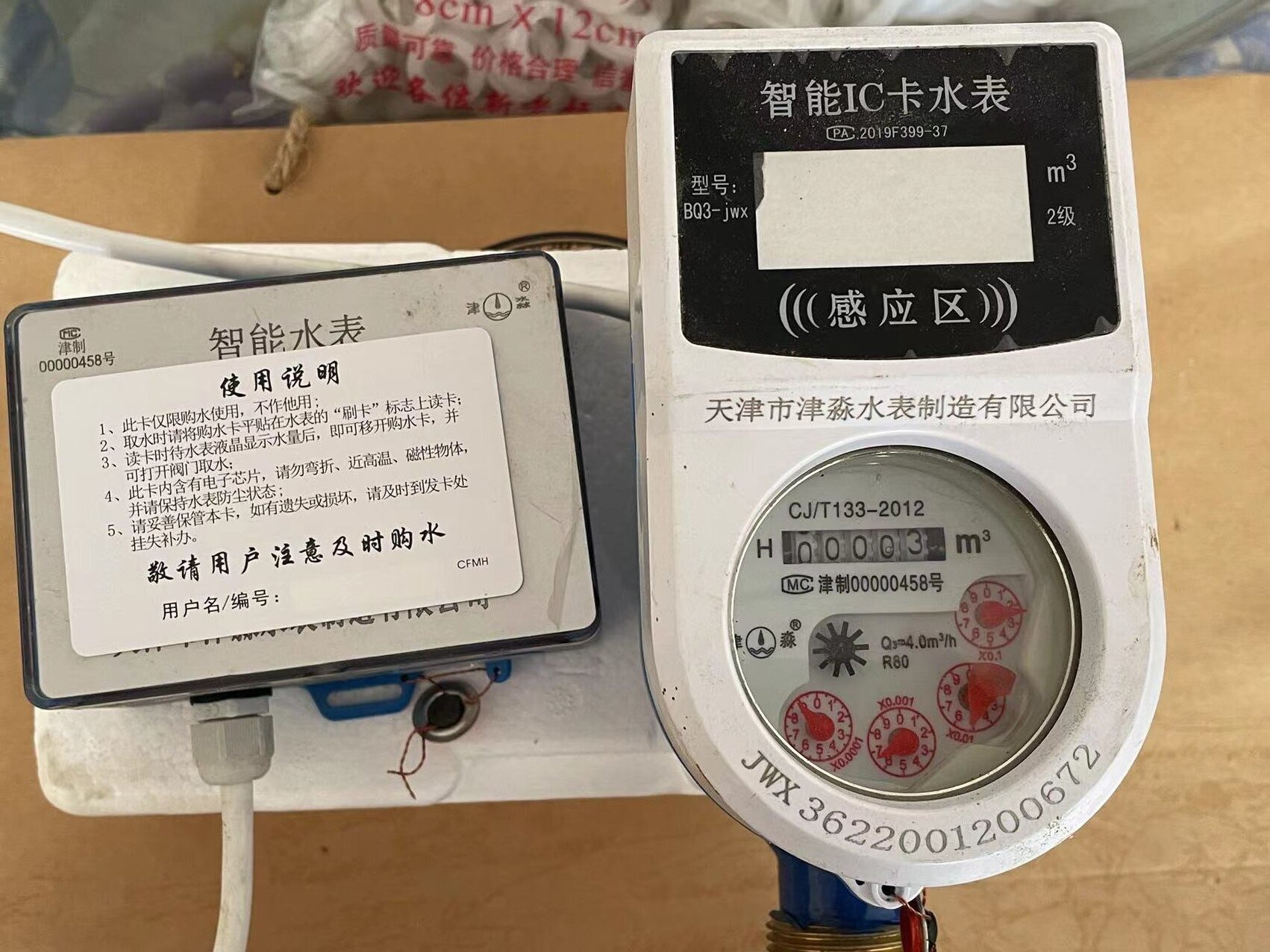 2、用戶(hù)持卡在售水處購(gòu)水后,購(gòu)水信息寫(xiě)在磁卡上。以下兩種磁卡表均為分體式。用戶(hù)只需將IC卡貼在刷卡區(qū)數(shù)秒,購(gòu)水信息即讀入,完成充值。電子屏顯示充入水量、累計(jì)購(gòu)買(mǎi)水量和剩余水量等信息。