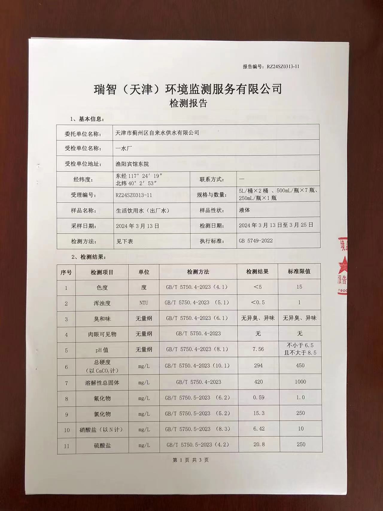 2024年3月份水質(zhì)檢測(cè)報(bào)告