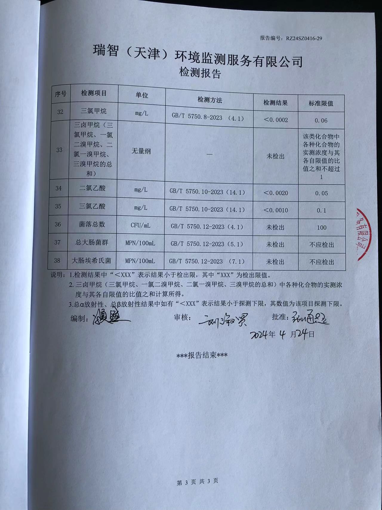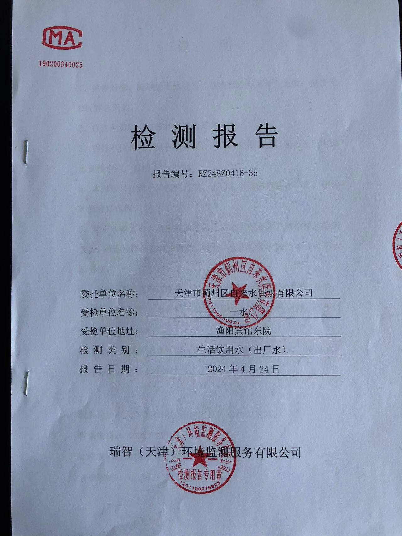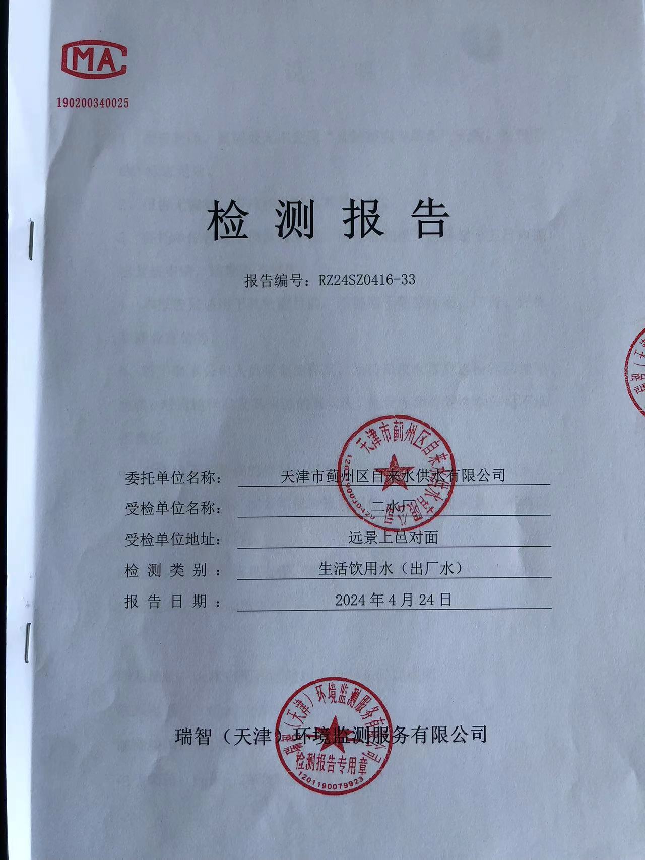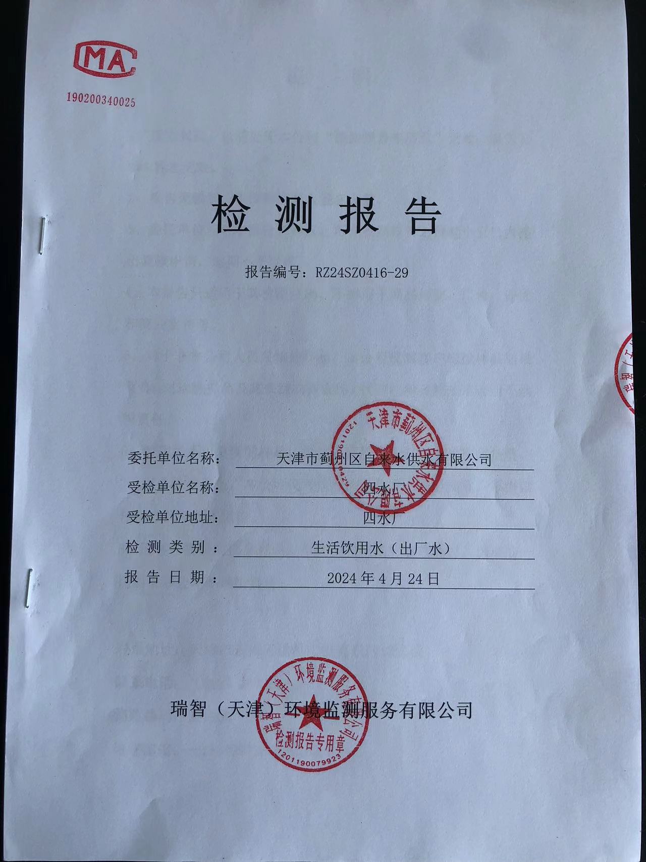 2024年4月份水質(zhì)檢測(cè)報(bào)告