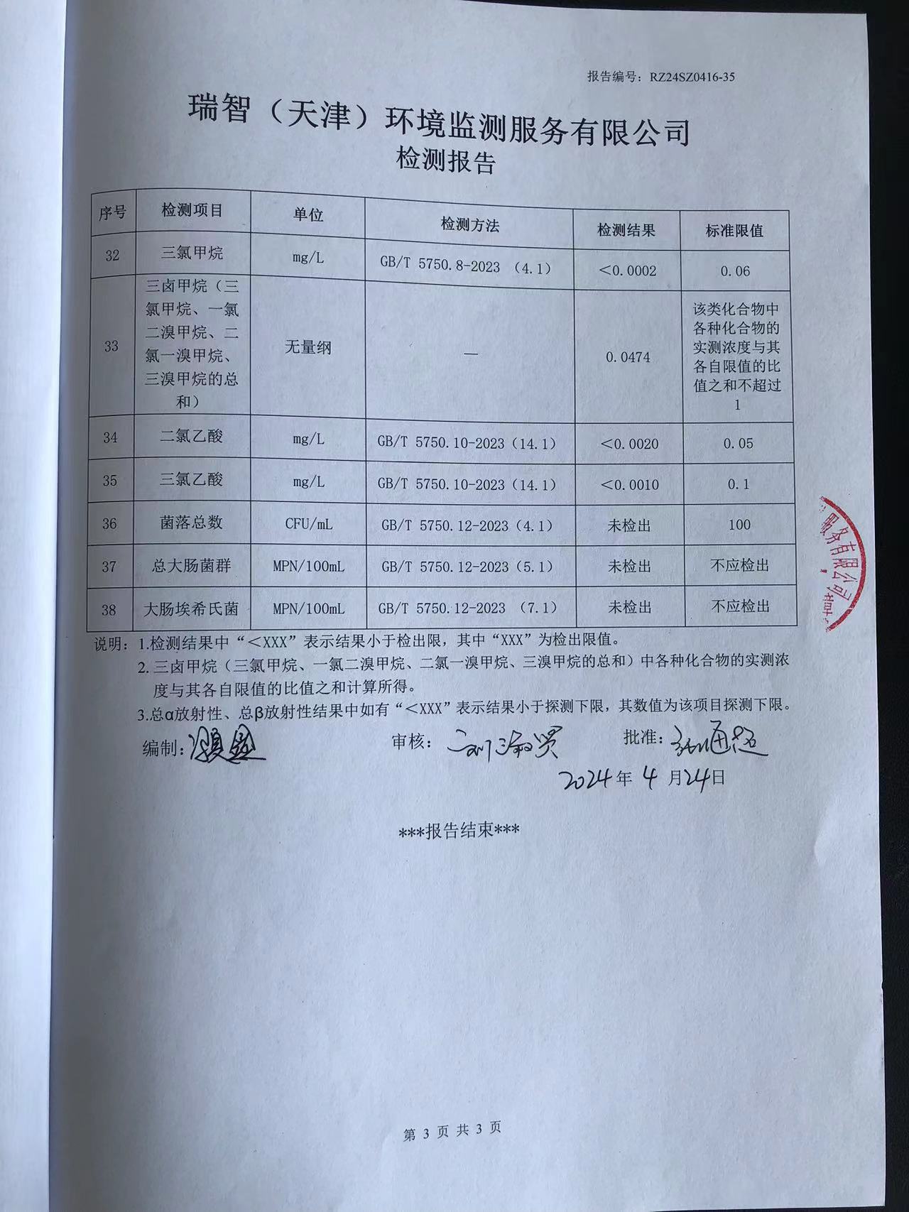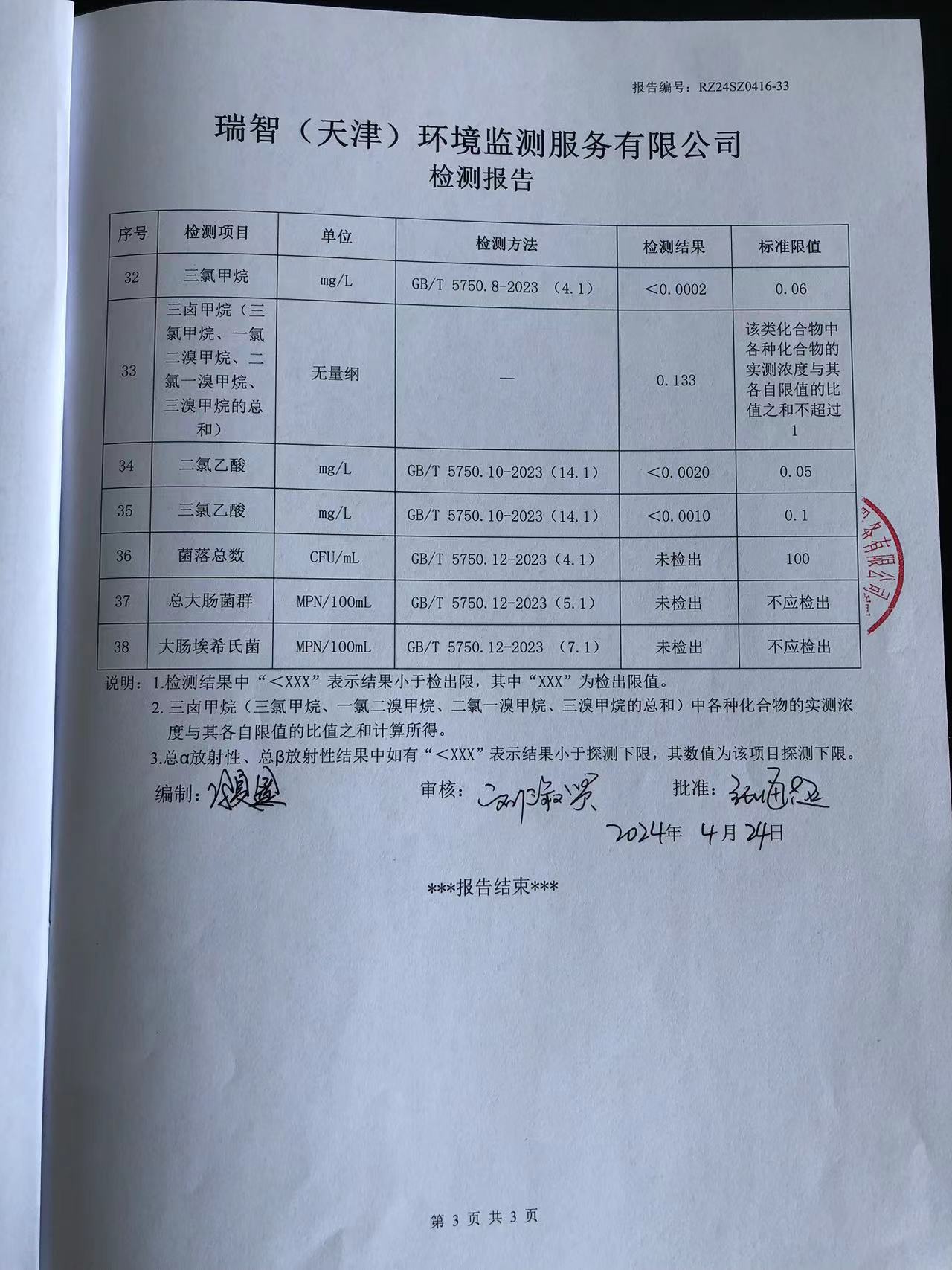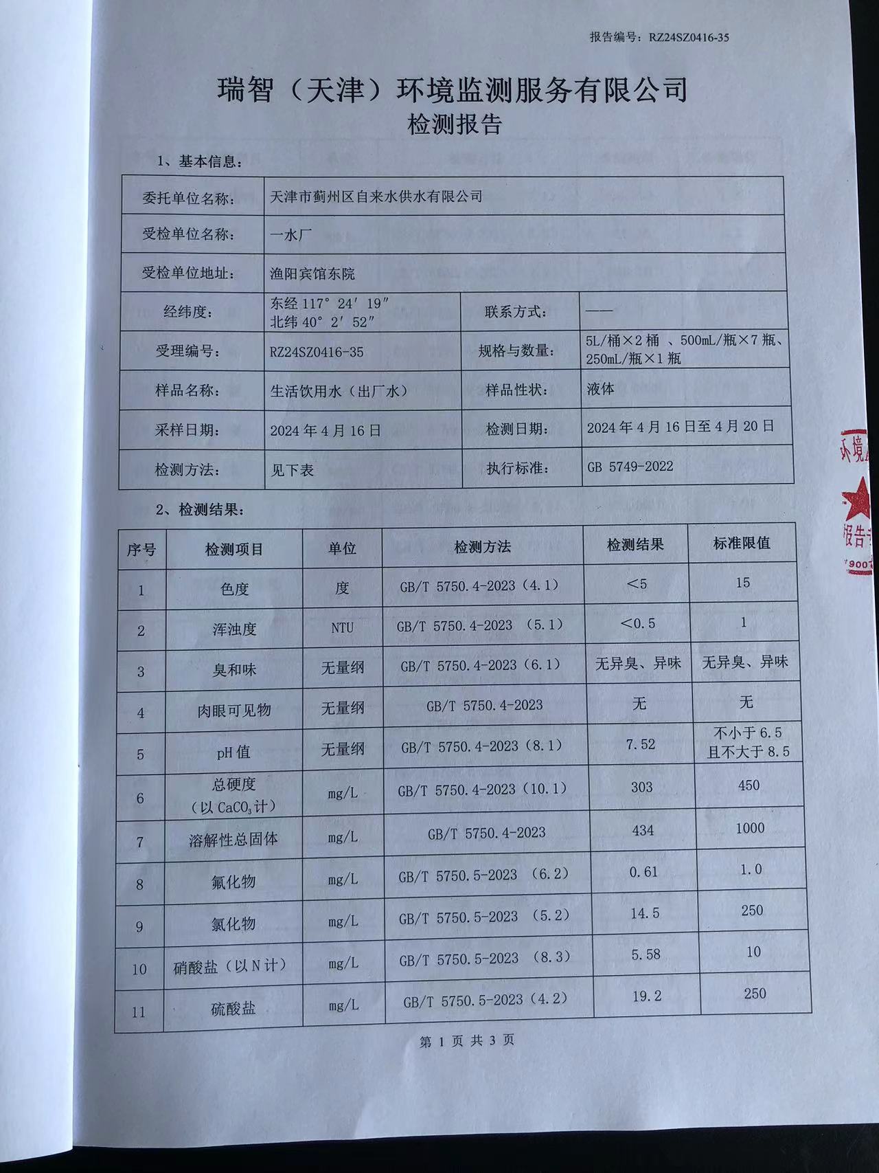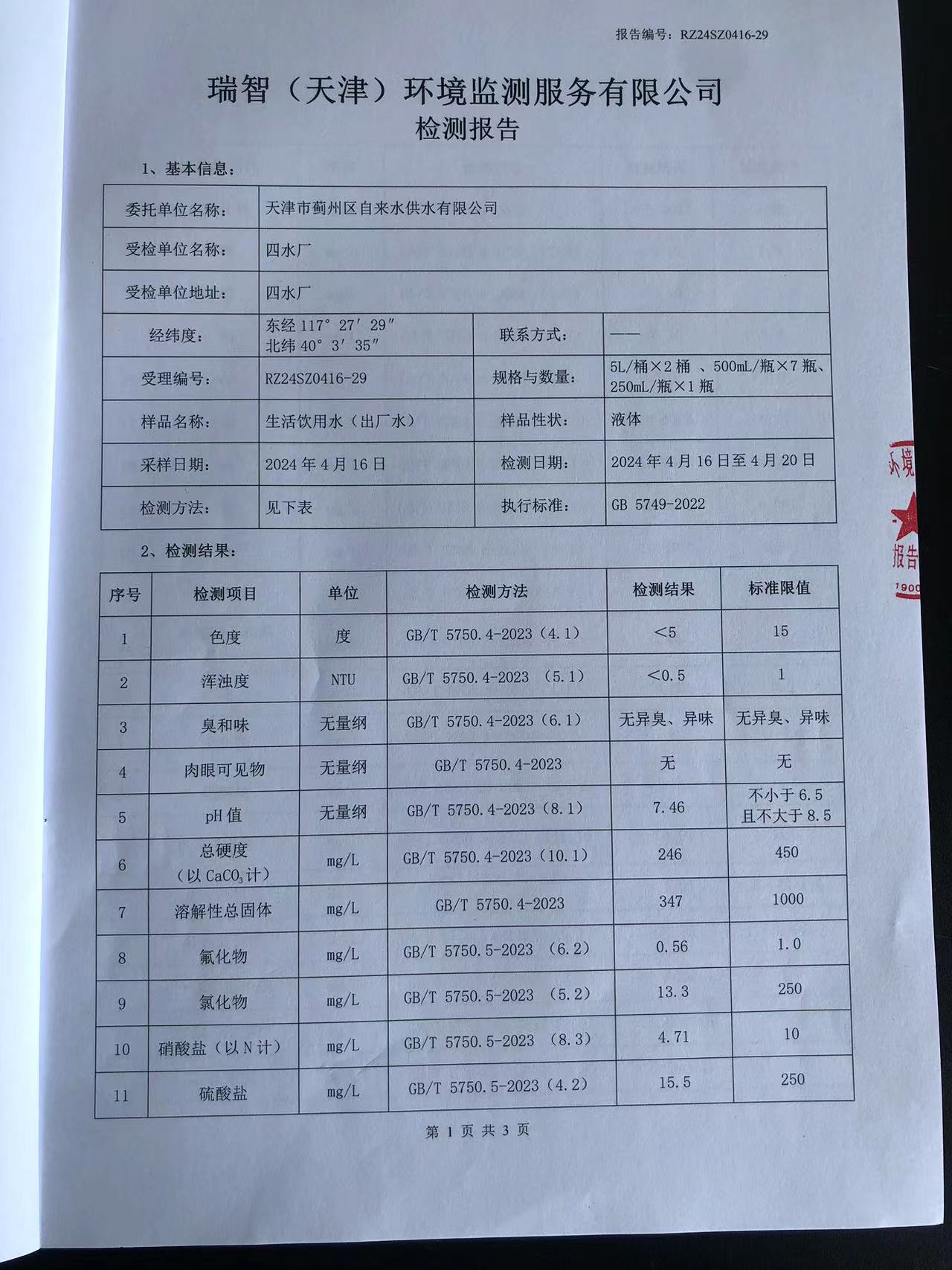 2024年4月份水質(zhì)檢測(cè)報(bào)告