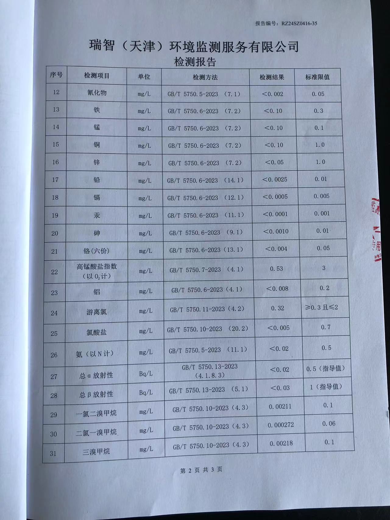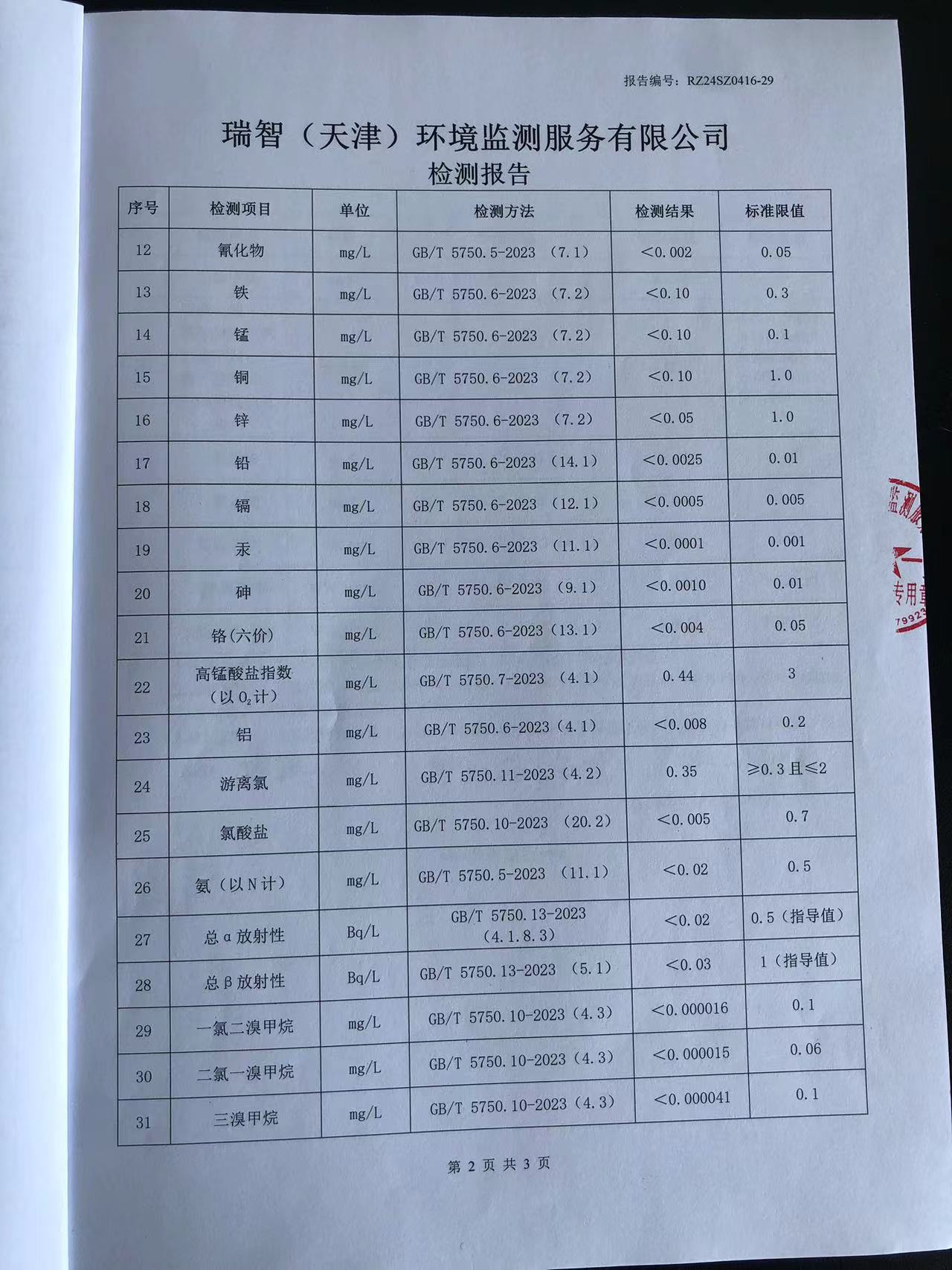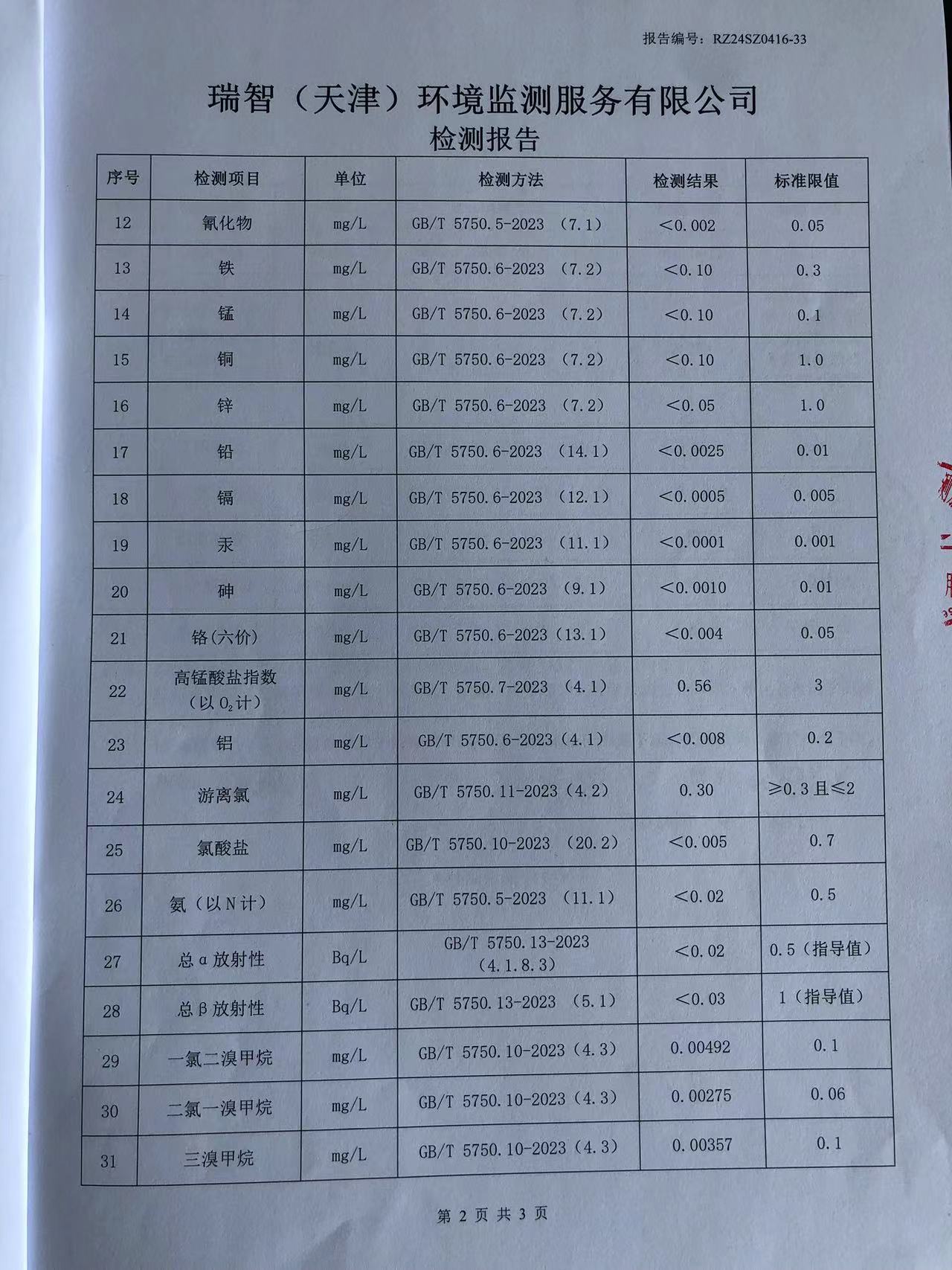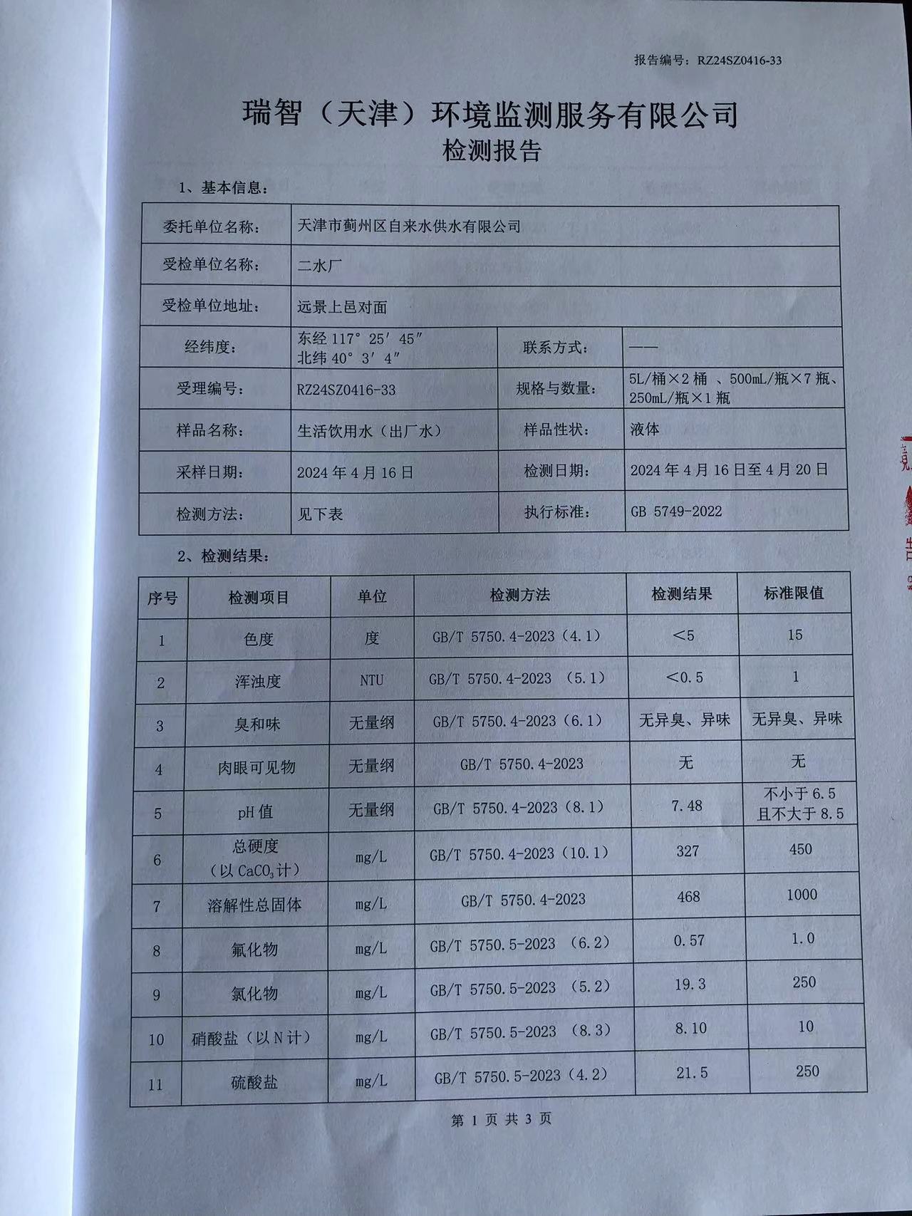 2024年4月份水質(zhì)檢測(cè)報(bào)告