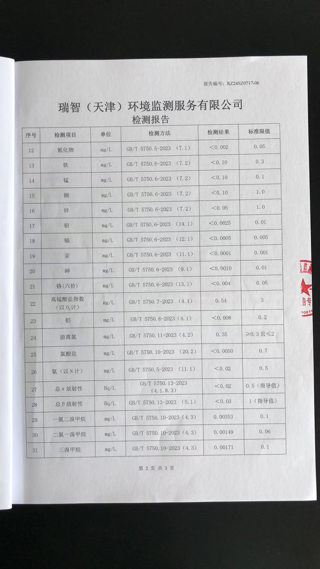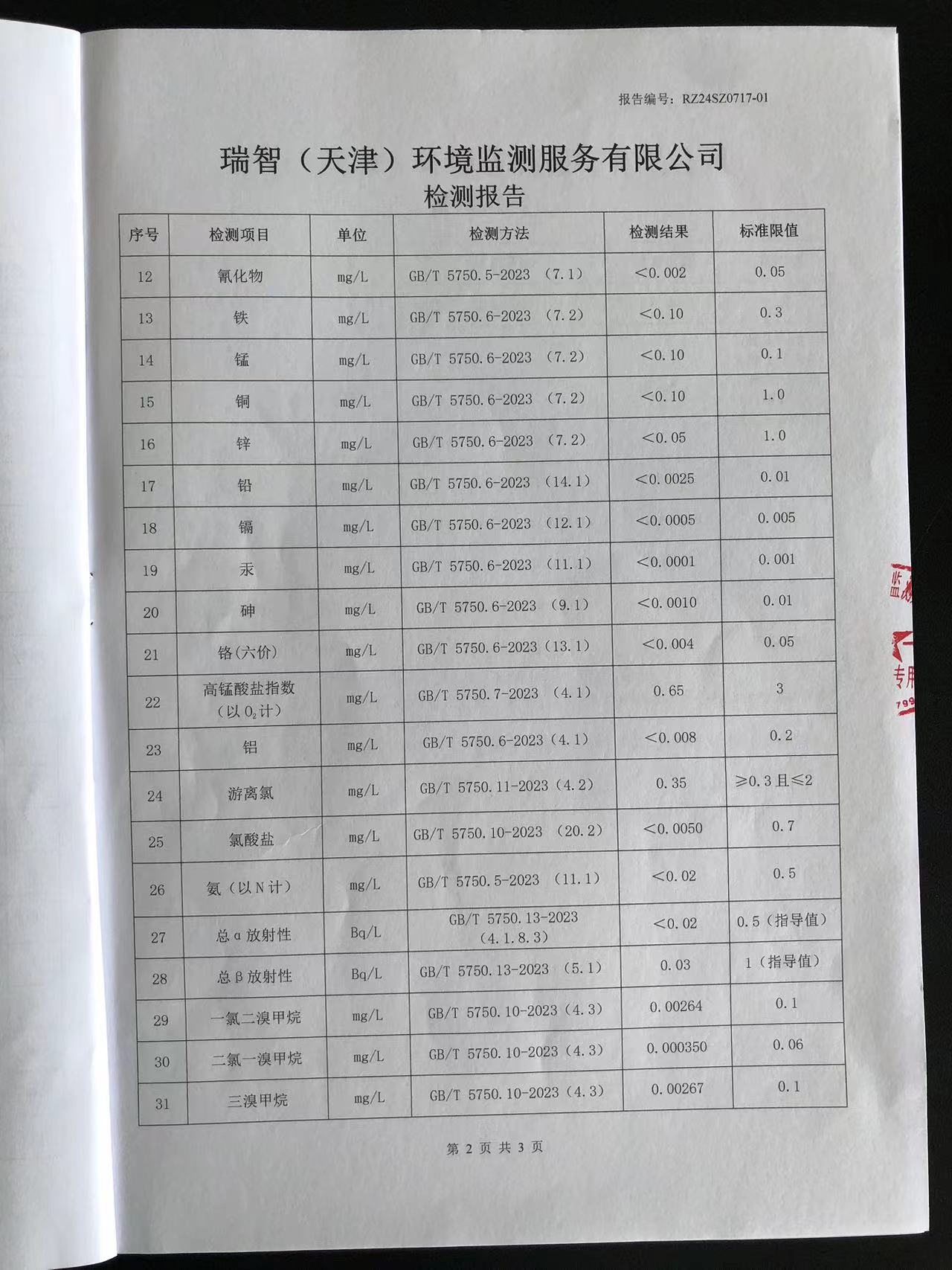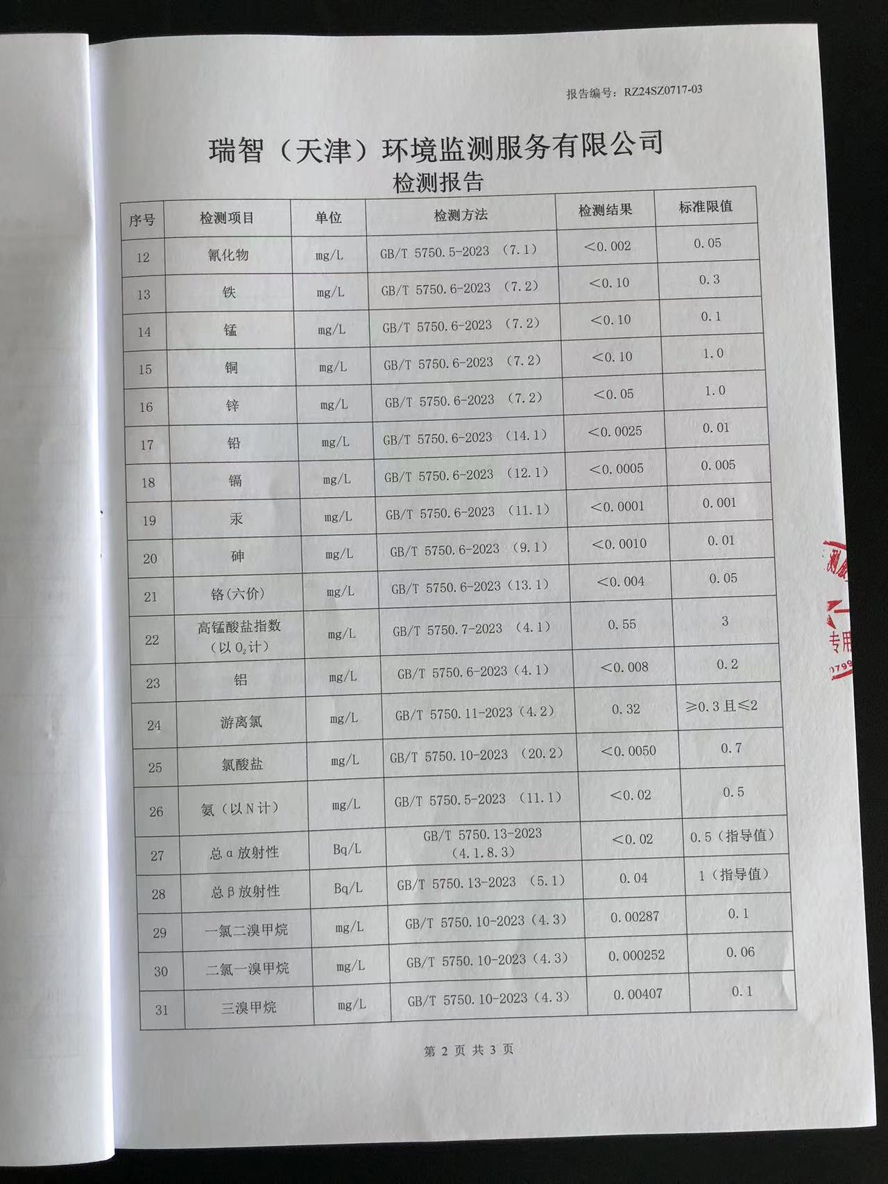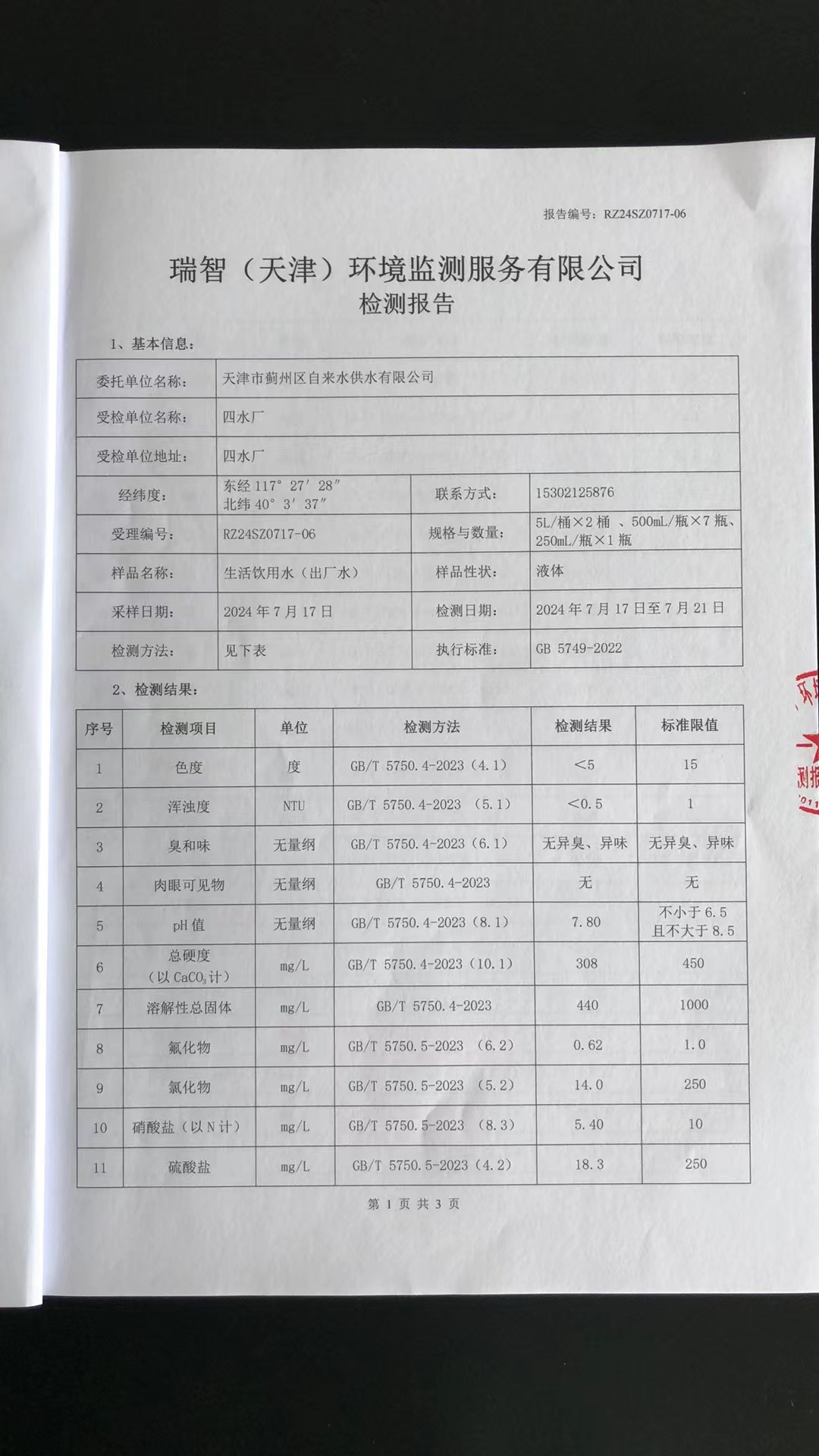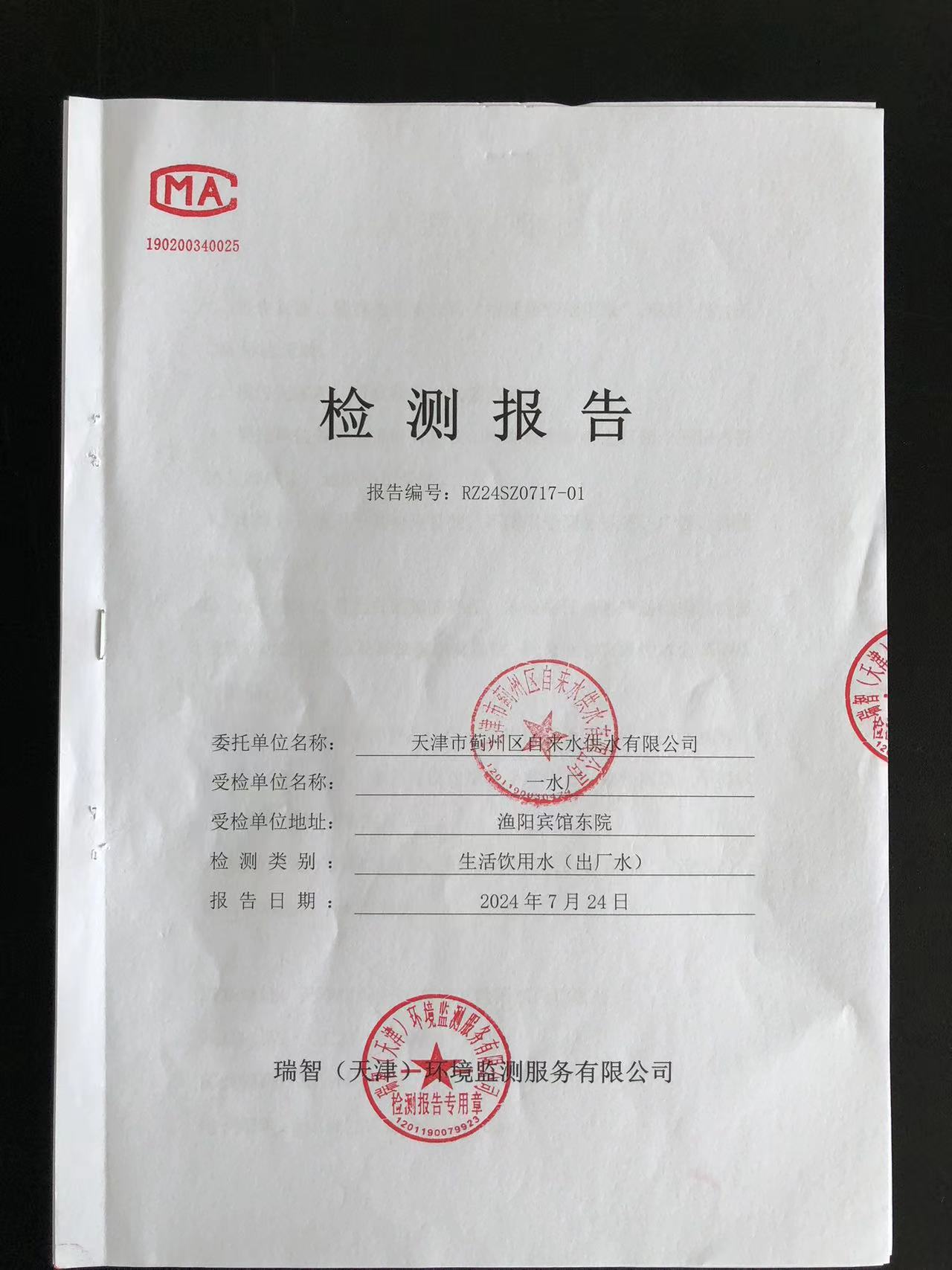 2024年7月份水質(zhì)檢測報告