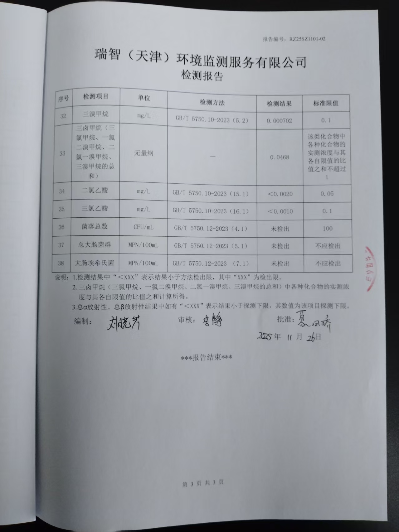 2025年11月份水質(zhì)檢測(cè)報(bào)告