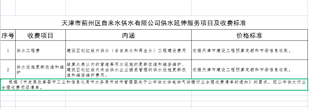 供水延伸服務(wù)項目及收費標(biāo)準(zhǔn)